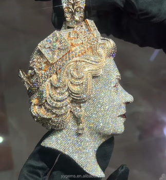 תליון זיכרון המלכה מותאם אישית מלא קרח החוצה תליון vs moissanite לעבור מבחן יהלום מלא כסף כבד כסף כבד